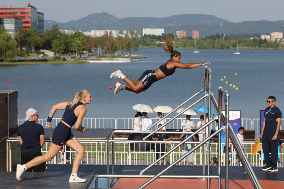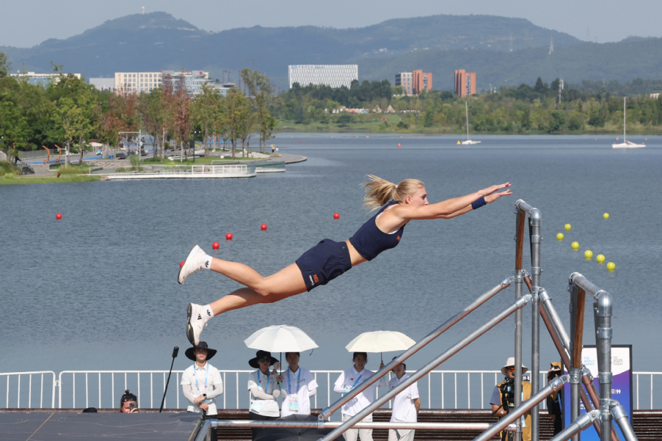 中国日报8月12日电(记者 魏晓昊)2025年8月12日,成都世运会跑酷女子竞速赛在兴隆湖湖滨赛场举行,瑞典运动员Tibbling Miranda、荷兰运动员Man Noa与阿根廷运动员Banchoff Tzancoff Sara分获金银铜牌。